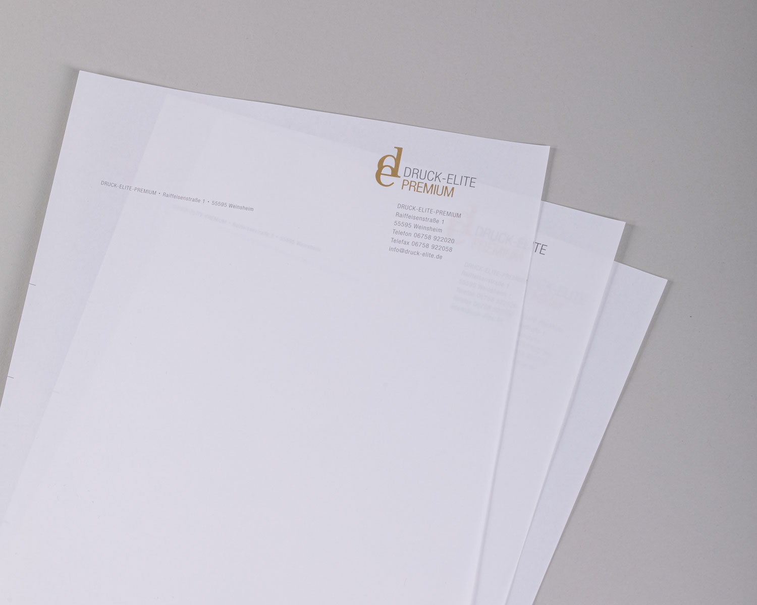 Einer unserer Topseller: Briefbogen in bester Qualität, hochwertig veredelt und im hervorragenden Offsetdruck realisiert. Die Geschäftsausstattung – Ihr persönliches Briefpapier wandert durch viele Hände. Machen Sie sich dies zu nutze und legen Sie ganz besonderen Wert auf die Gestaltung, Veredelung und den Druck in Spitzenqualität. So bleiben Sie dem Empfänger positiv im Gedächtnis. Briefbögen gewinnen durch dezent eingesetzte Präge-Effekte enorm an Wert. Ihr Logo kommt blindgeprägt oder mit silberner, goldener oder andersfarbiger Heißfolienprägung wunderbar zur Geltung.