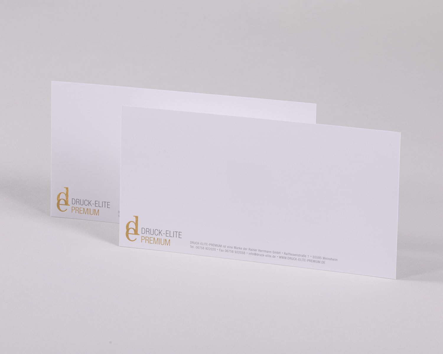 Das Standard DIN Format ist nach wie vor beliebt bei der Produktion von Karten aller Art. Für den kostengünstigen Postversand von Mailings, Eintrittskarten oder Glückwunschkarten bieten sich vor allem die altbekannten Postkartenformate DIN A6 und DIN lang an. Druck-Elite Premium hat klassische Karten in verschiedenen DIN-Formaten im Repertoire. Wir realisieren Ihre Traumkarten im erstklassigen Druck und mit Präzision veredelt. Ein geprägtes Logo und farbige Schnittkanten geben Ihren persönlichen Karten den letzten Schliff
